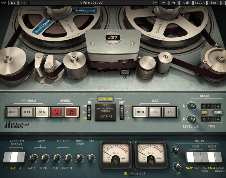 Many modern drum sample packs are recorded to reel-to-reel tape before being bounced down. This adds smooth character as well as a subtle bump in the lows. We can replicate this effect with Waves J37 Tape Saturation plugin. Place this after Abbey Road Saturator. The default setting sounds good but we can crank up the saturation for more presence.